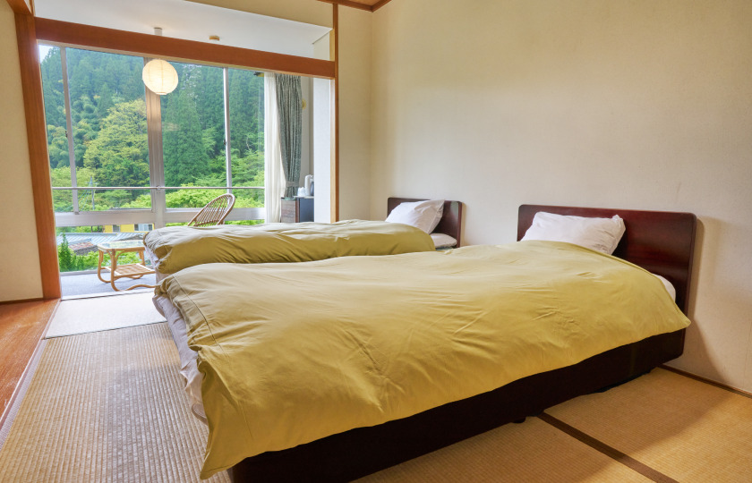 川音をBGMに湯めぐり気分へ。源泉かけ流しの温泉宿「季の郷 山の湯」温泉と料理の両方を楽しめるのが魅力。湯に浸かれば、外の空気まで気持ちよく感じられて、自然と呼吸が深くなる。湯上がりは肩の力が抜けたまま、ゆったり食事へ。