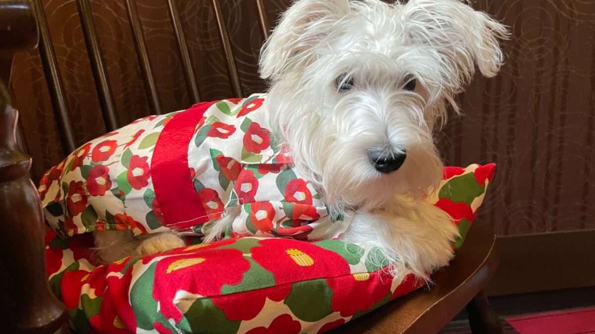 わんちゃん用の椿浴衣のお貸出しいたします!